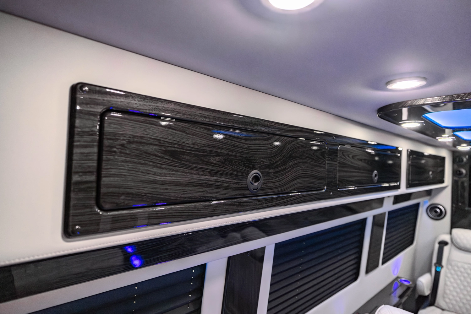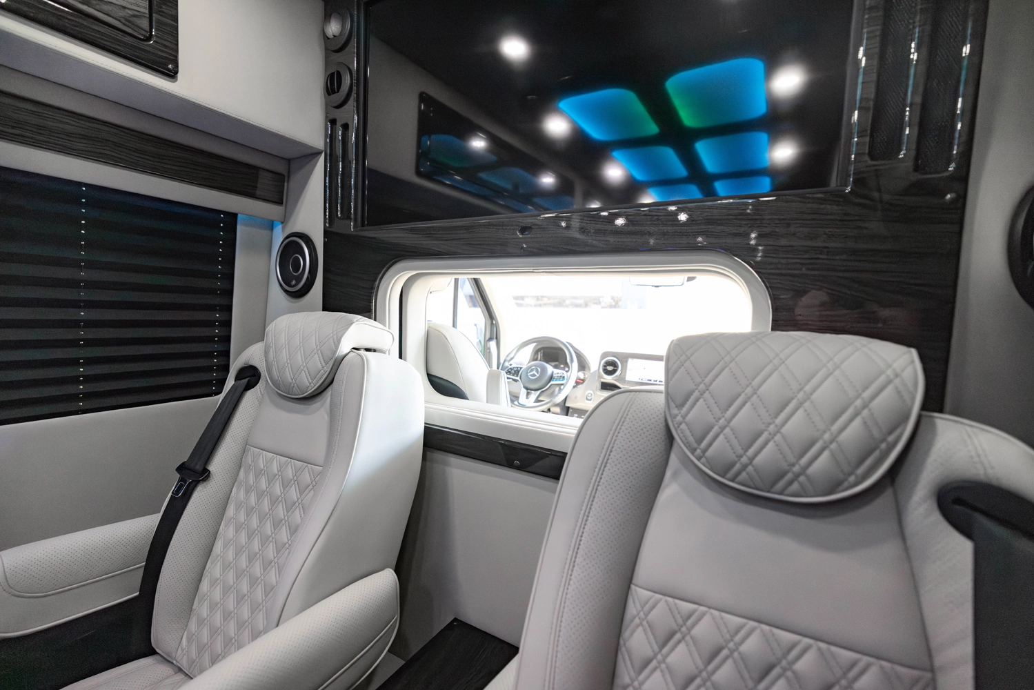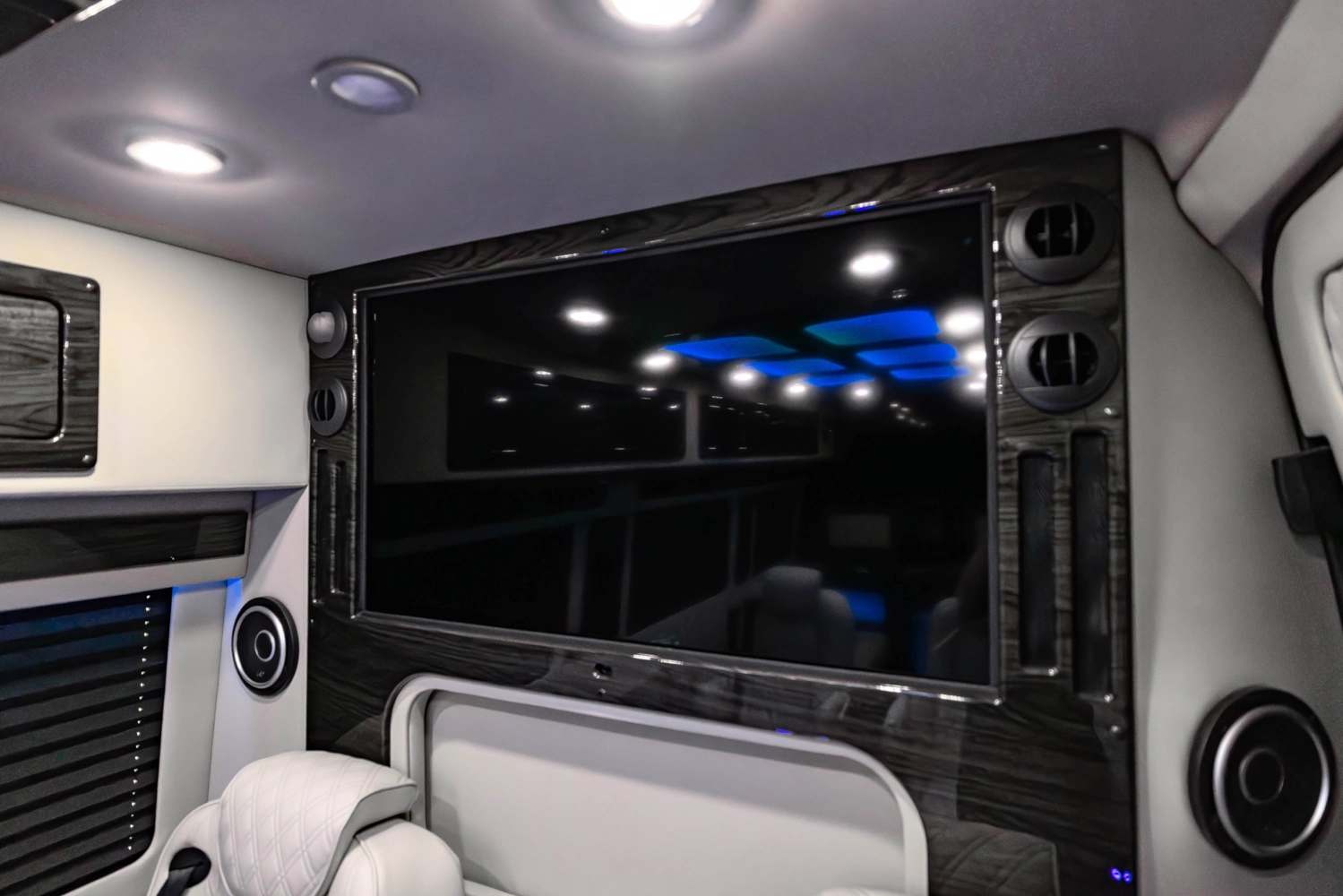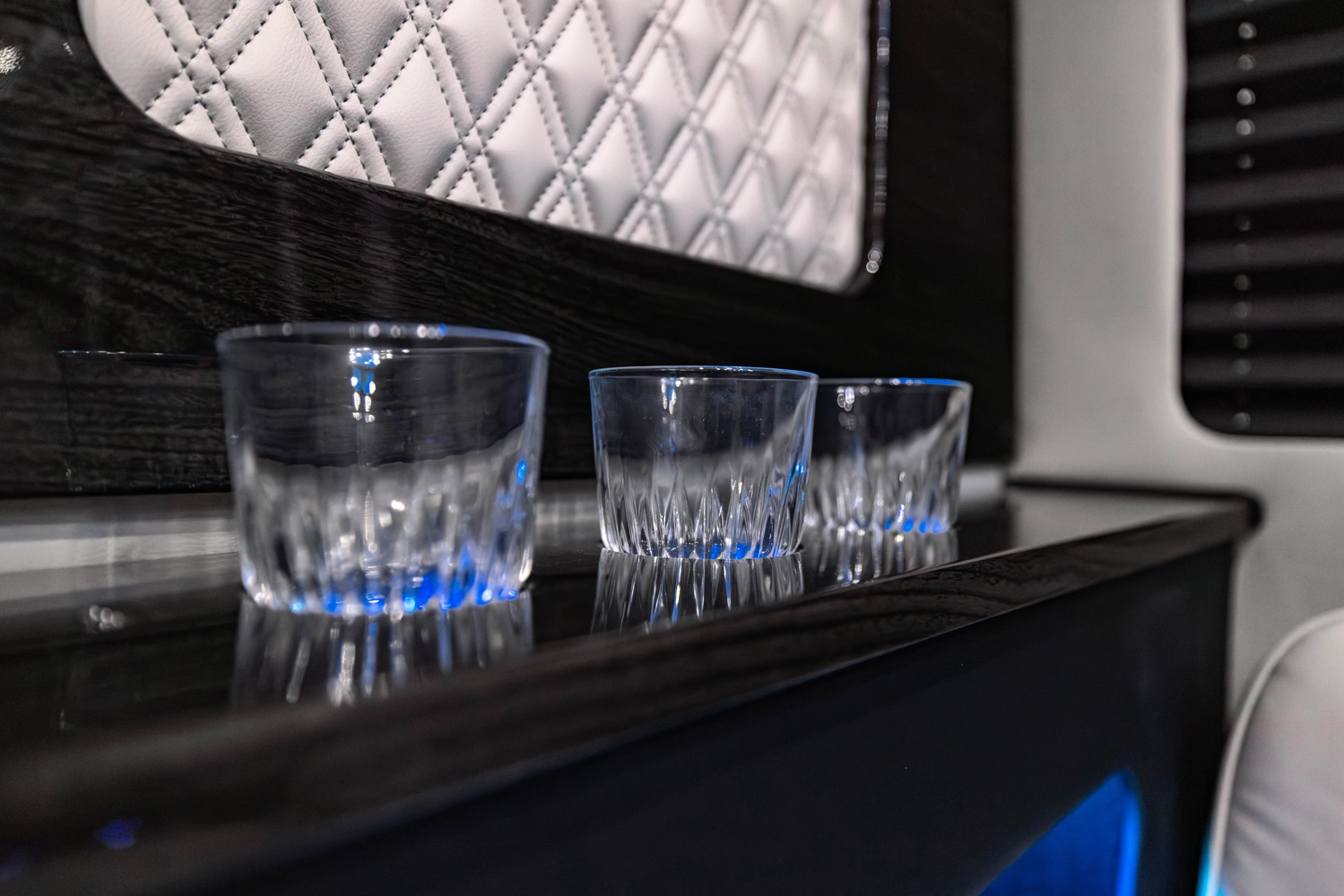 The VDRIVE 10OB redefines executive travel, hosting ten passengers with four handcrafted captain’s chairs and 38" opposing benches. Featuring full partitioning for the driver and co-pilot, this model provides a private environment tailored for elite chauffeur and business events. Superior sound insulation, advanced climate control, and premium entertainment systems complete this pinnacle of luxury transportation.