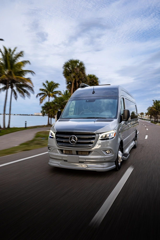 The 7RL offers an elevated group travel experience, featuring a refined 7-passenger layout featuring four handcrafted captain’s chairs, a rear lounge bed, a full driver-side wet bath, and a passenger-side kitchenette. Designed for luxury camping and group travel, it includes a microwave, cooktop and advanced climate controls. VRV models come with superior sound insulation, state-of-the-art entertainment, and sleek custom full-body paint, blending luxury and capability for blissful retreats.