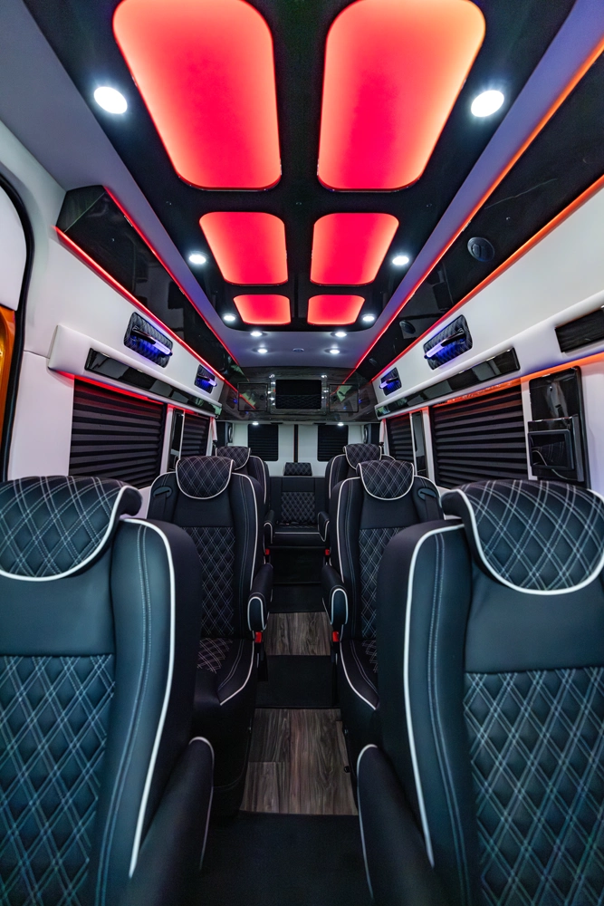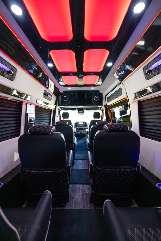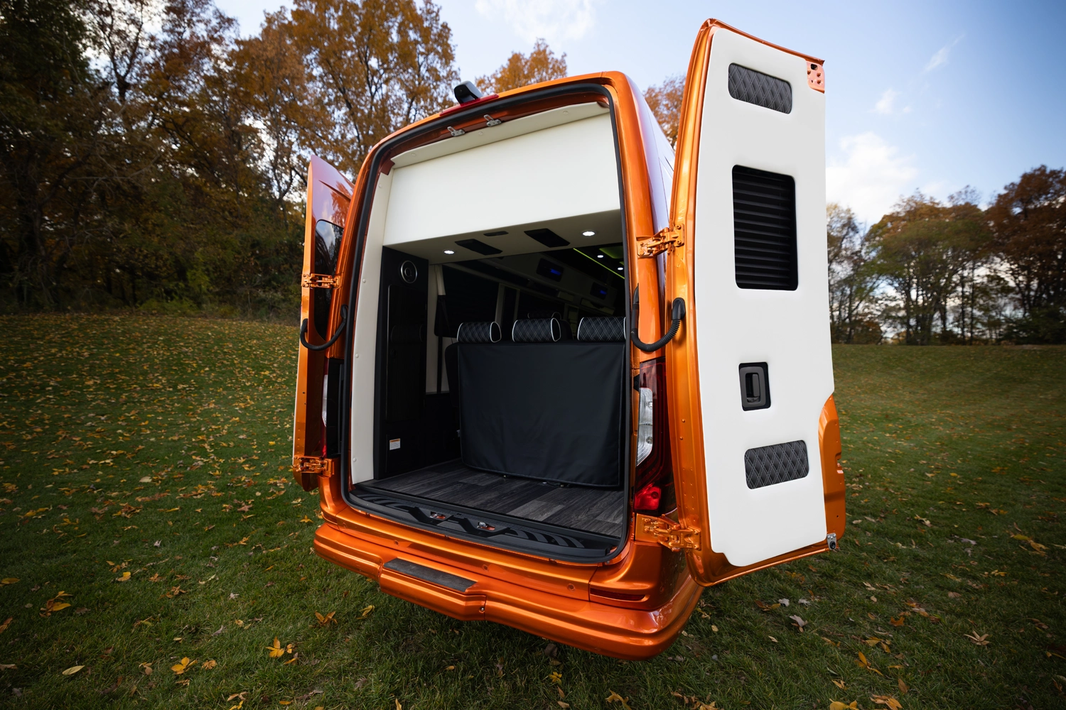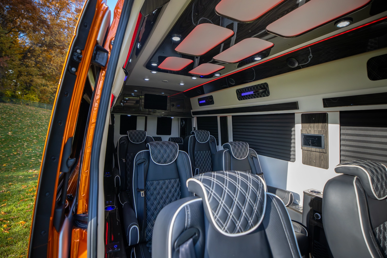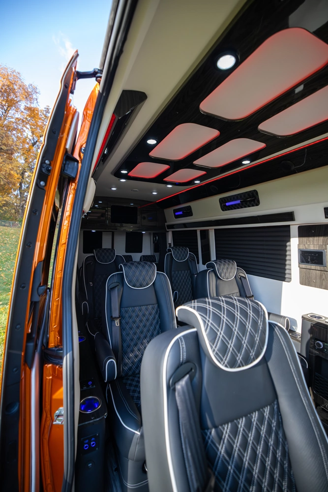 The 9RB7 is crafted for groups who move with purpose and style. This refined 9-passenger layout features driver and co-pilot seating, an open cabin design, four handcrafted captain’s chairs, and a spacious rear bench. With flexible seating configurations, an optional rear cargo partition for gear or apparel, advanced climate control, superior sound insulation, and state-of-the-art entertainment, VSPORT delivers confident luxury, comfort, and performance for elevated travel on the move.