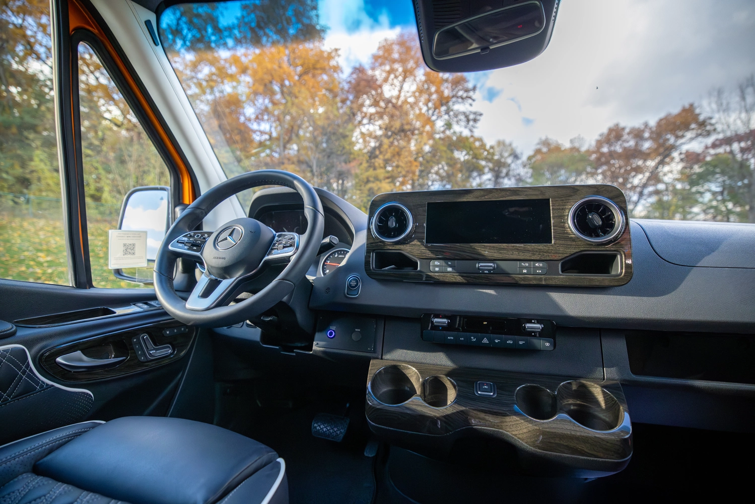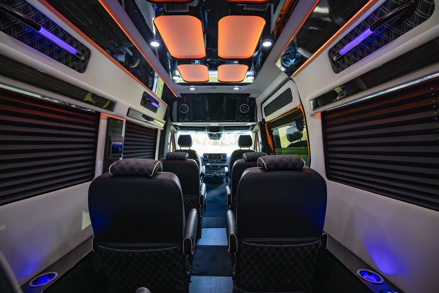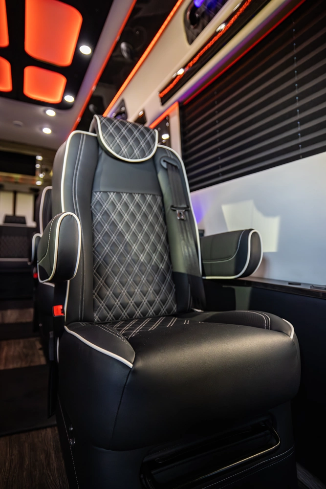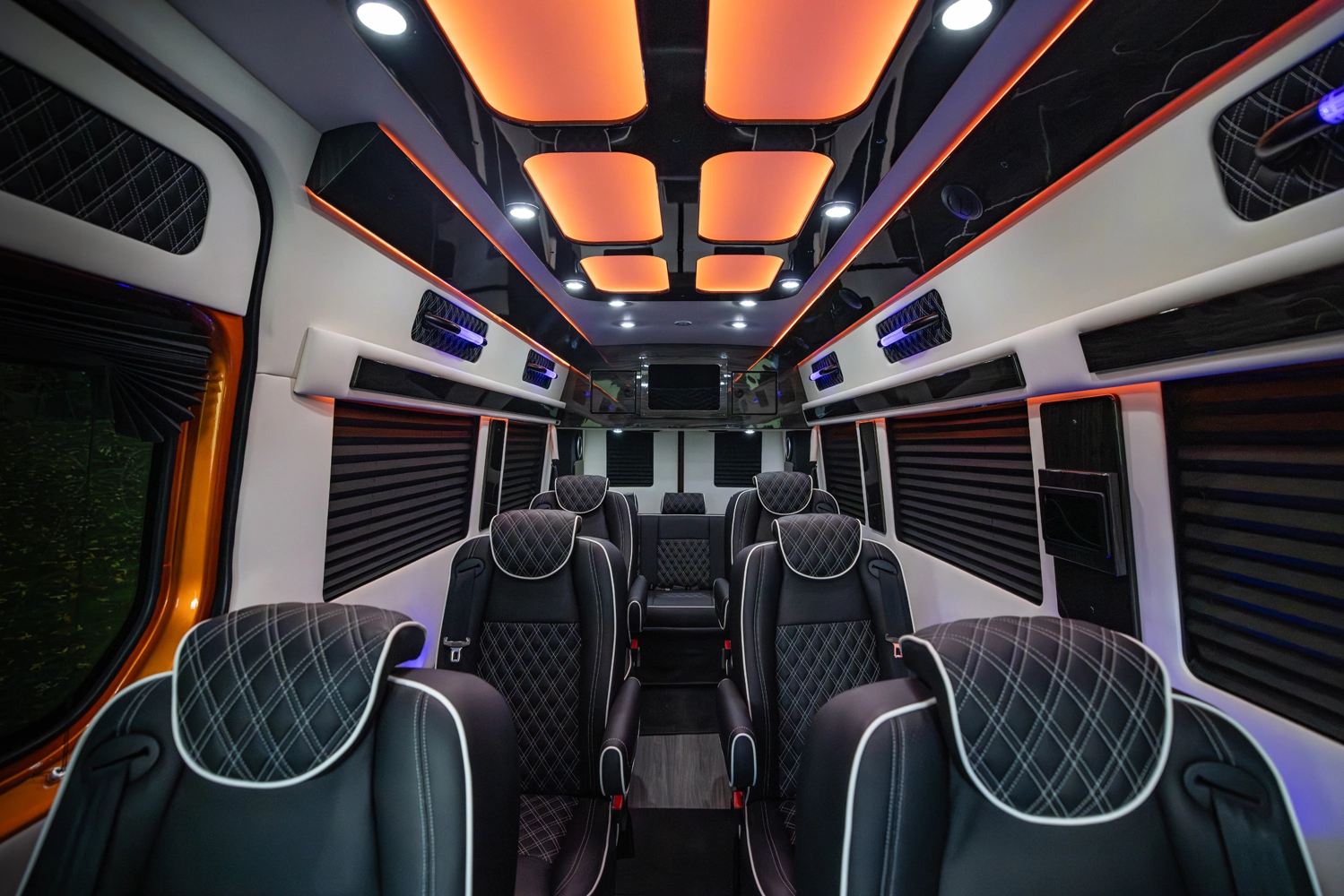 The 9RB7 is crafted for groups who move with purpose and style. This refined 9-passenger layout features driver and co-pilot seating, an open cabin design, four handcrafted captain’s chairs, and a spacious rear bench. With flexible seating configurations, an optional rear cargo partition for gear or apparel, advanced climate control, superior sound insulation, and state-of-the-art entertainment, VSPORT delivers confident luxury, comfort, and performance for elevated travel on the move.