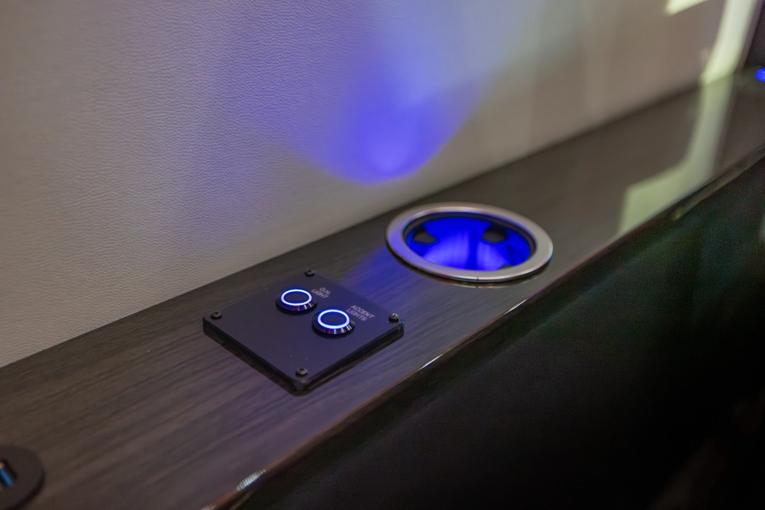 • Wall Consoles with Cup Holders, USB, USB-C Charge Ports & 110V Outlets