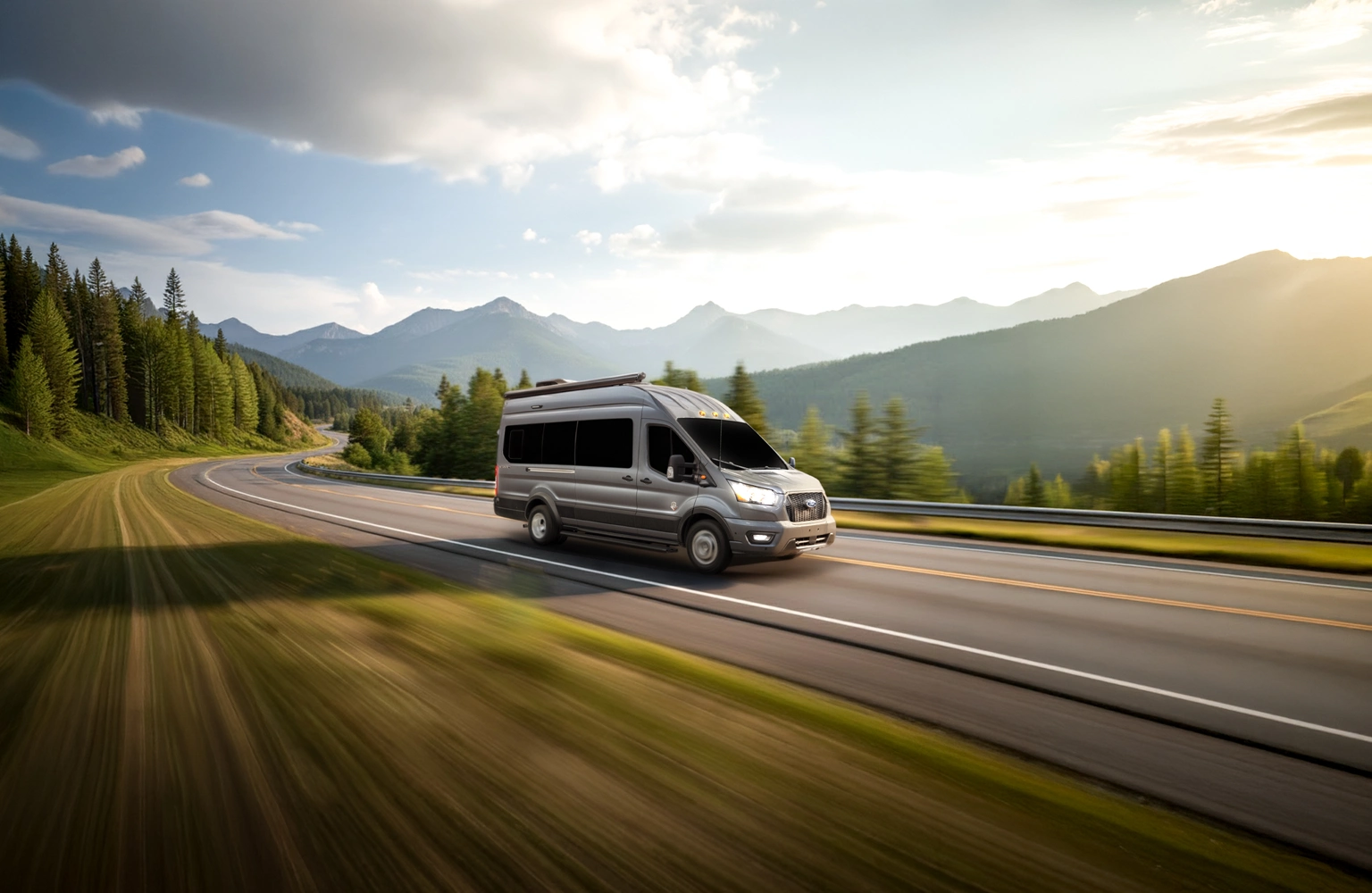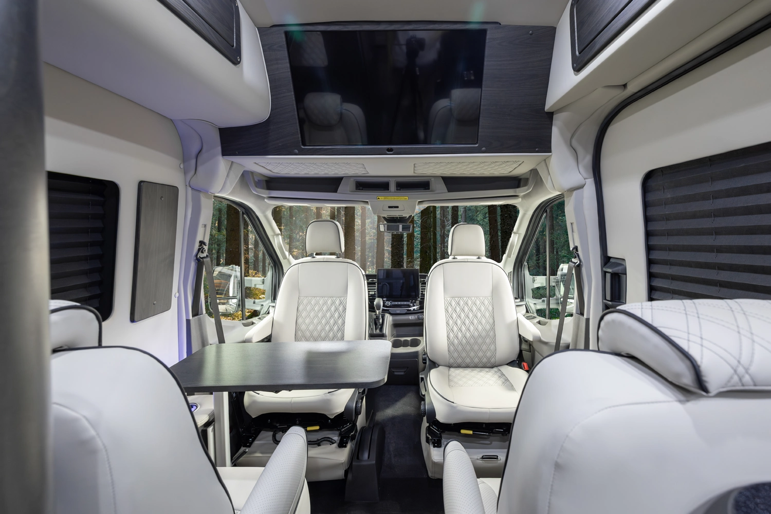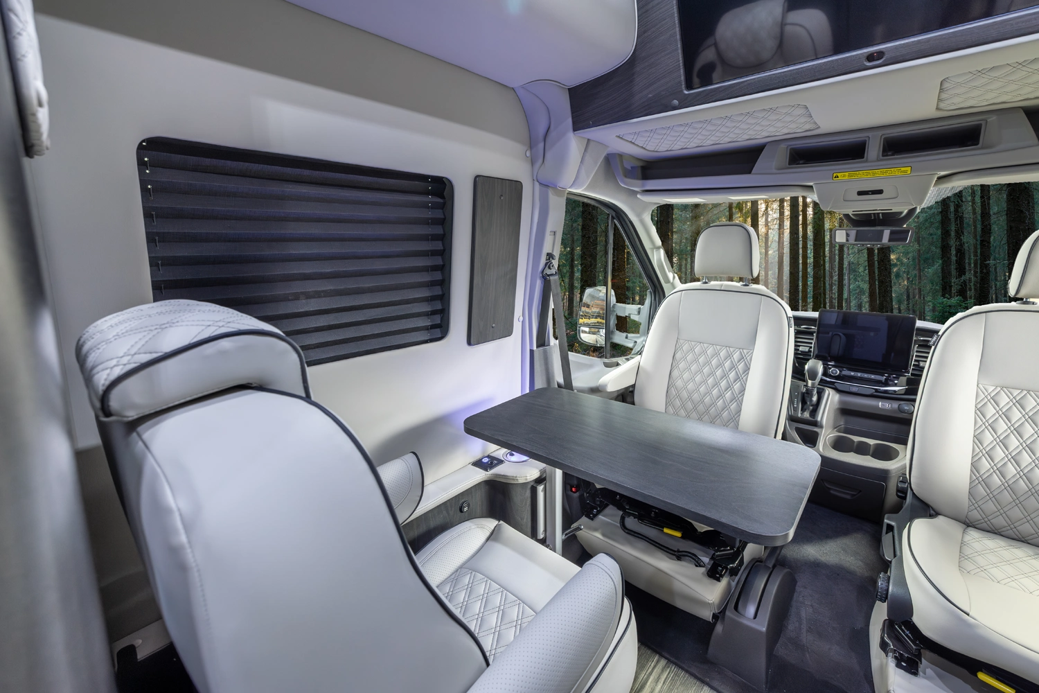 Built for adventure camping on a Ford 148” wheelbase transit van. VTOUR models offer a full wet bath, microwave, cooktop and rugged exterior accessories. These luxury adventure vans are complete with handcrafted seating, advanced climate control, superior sound insulation and state-of-the-art entertainment options. #VTOUR