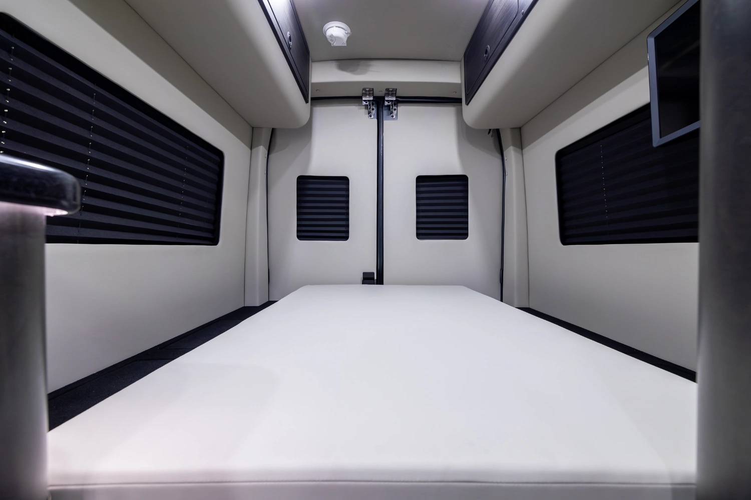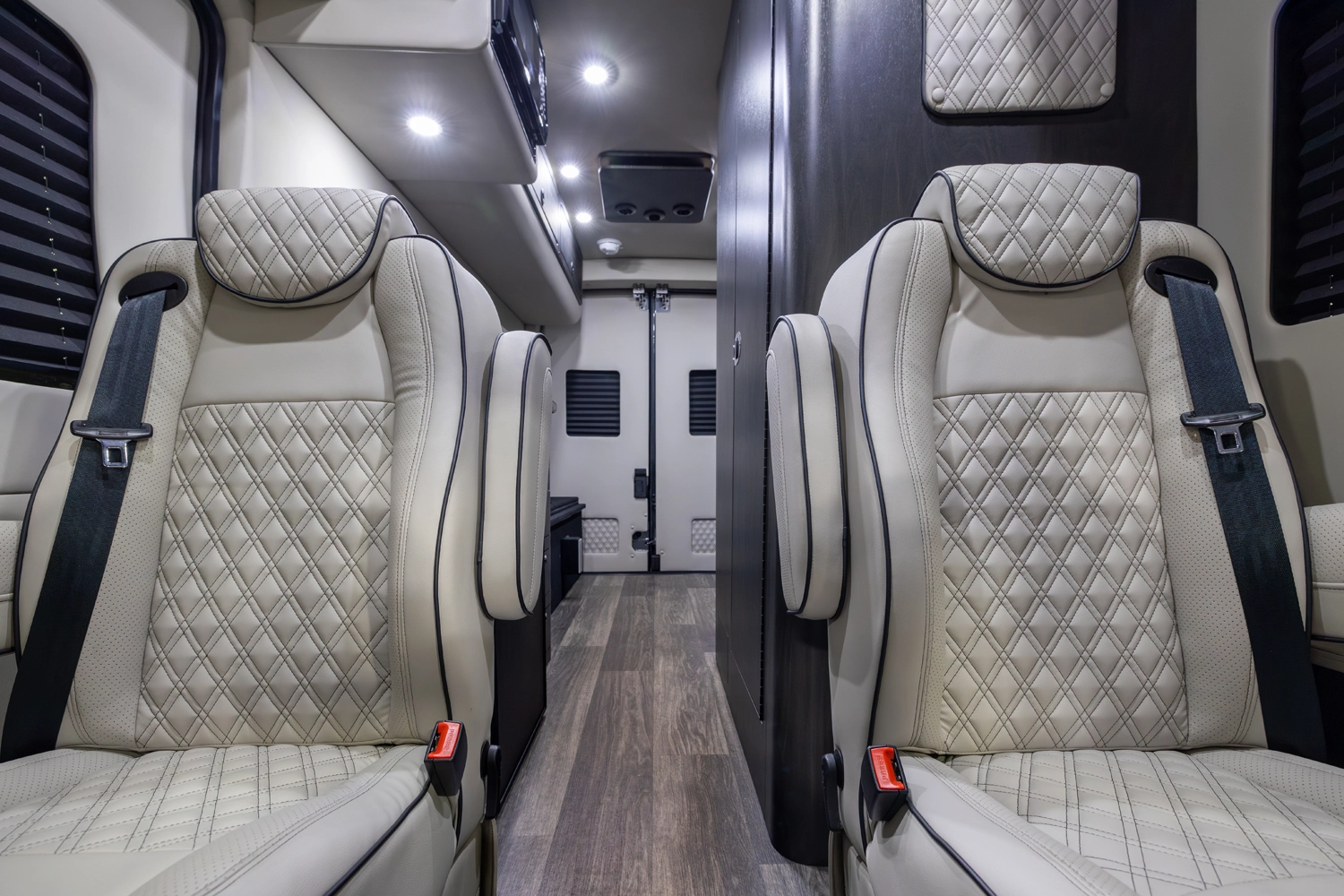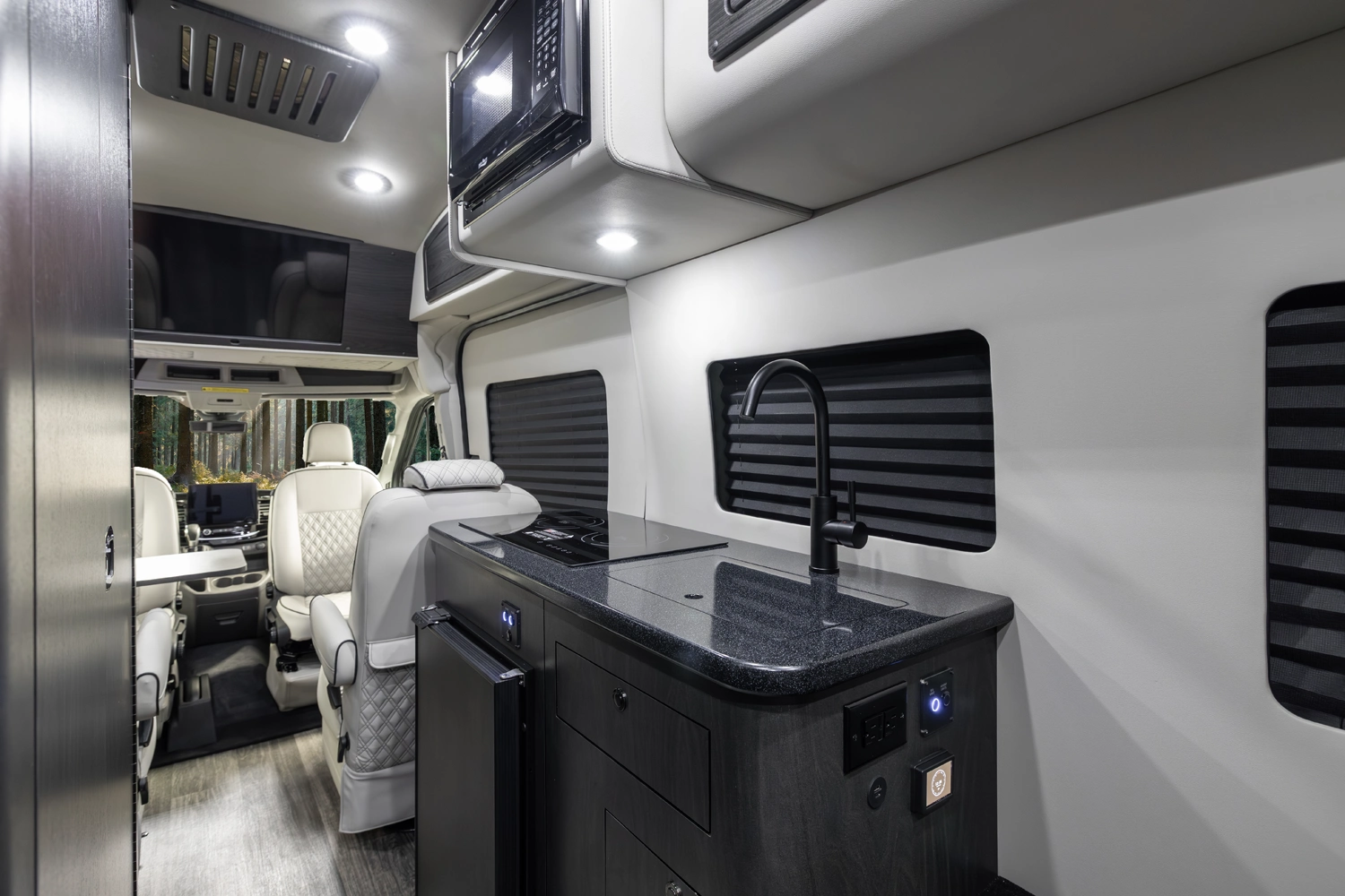 Built for adventure camping on a Ford 148” wheelbase transit van. VTOUR models offer a full wet bath, microwave, cooktop and rugged exterior accessories. These luxury adventure vans are complete with handcrafted seating, advanced climate control, superior sound insulation and state-of-the-art entertainment options. #VTOUR